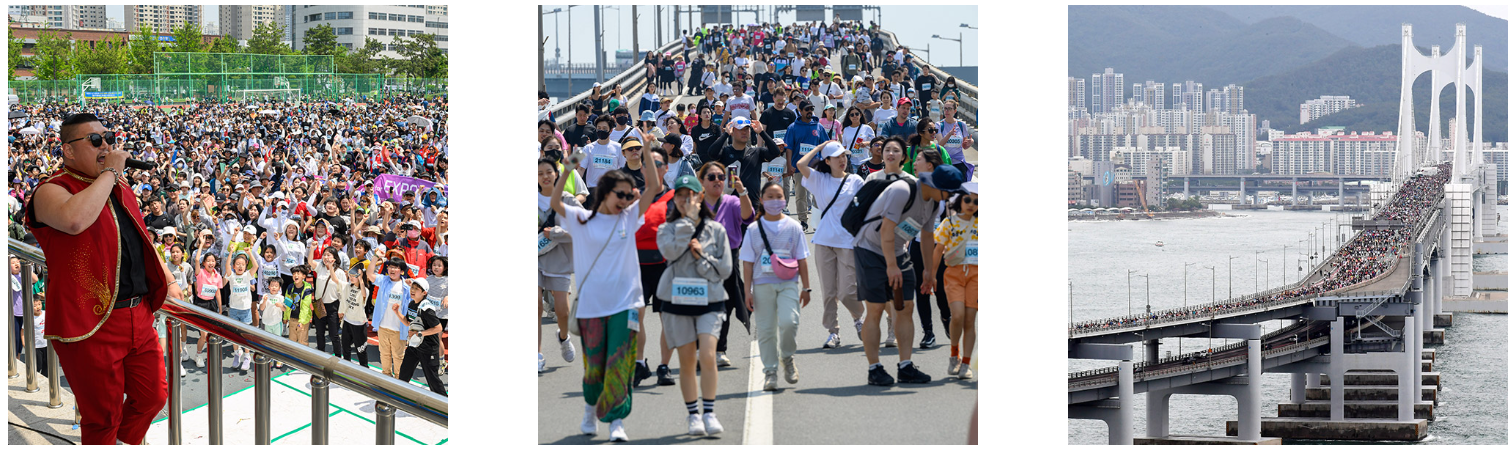 매년 많은 참가자가 몰리는 이 축제는 부산의 랜드마크인 다이아몬드브리지(광안대교) 상판을 직접 걸을 수 있는 유일한 기회로, 평소 차량만 통행 가능한 곳을 오직 이 날만큼은 도보로 건널 수 있습니다.