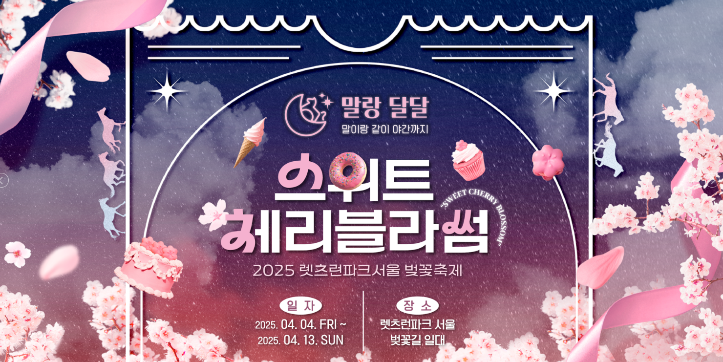 서울 근교에서 여유롭게 벚꽃을 감상하고, 체험도 하고, 먹거리도 즐길 수 있는 곳을 찾고 있다면 렛츠런파크 서울이 정답입니다. 해마다 열리는 벚꽃축제지만, 2025년에는 ‘말랑달달 스위트 체리블라썸’이라는 테마로 더욱 풍성하고 달콤한 프로그램들이 준비되어 있습니다. 특히 말과 벚꽃이라는 독특한 조합이 많은 사람들의 관심을 끌고 있으며, 낮과 밤 모두 색다른 매력을 가진 축제입니다.