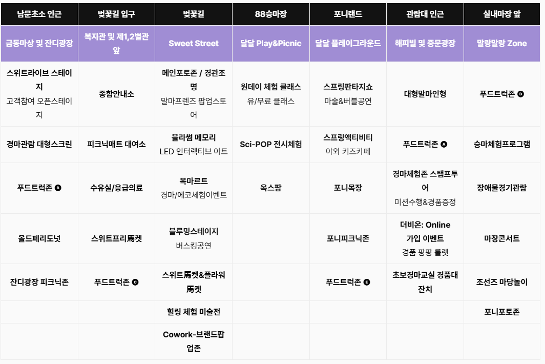 이 축제는 말과 꽃이라는 이색 조합 속에서 다양한 체험과 공연, 먹거리, 볼거리를 동시에 누릴 수 있는 것이 가장 큰 장점입니다. 단순히 꽃만 보고 끝나는 축제가 아닌, ‘놀이공원 같은 벚꽃축제’라고 표현해도 무방할 정도죠.