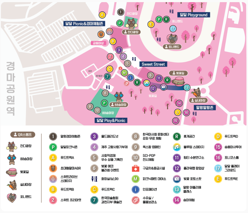 ① 스위트 스트리트 디저트가 테마인 메인 포토존과 다양한 팝업 부스가 조성됩니다. 사진 찍기 좋은 공간이 많고, 벚꽃과 함께 인생샷을 남기기에 안성맞춤이에요.