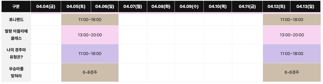 - 장소: 렛츠런파크 서울(경기도 과천시 경마공원대로 107)