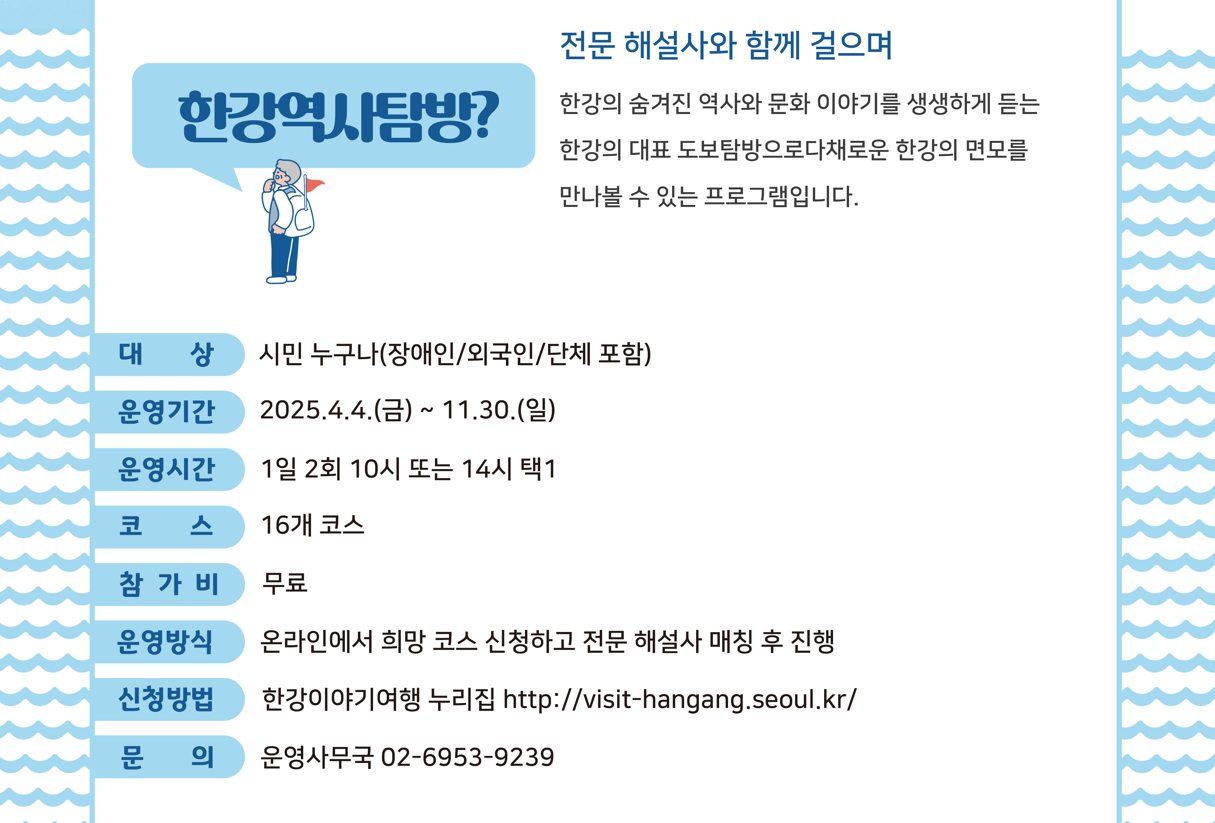 바쁜 하루 속에서 진짜 서울을 만나고 싶다면, 한강역사탐방은 분명 최고의 선택이 되어줄 것입니다.