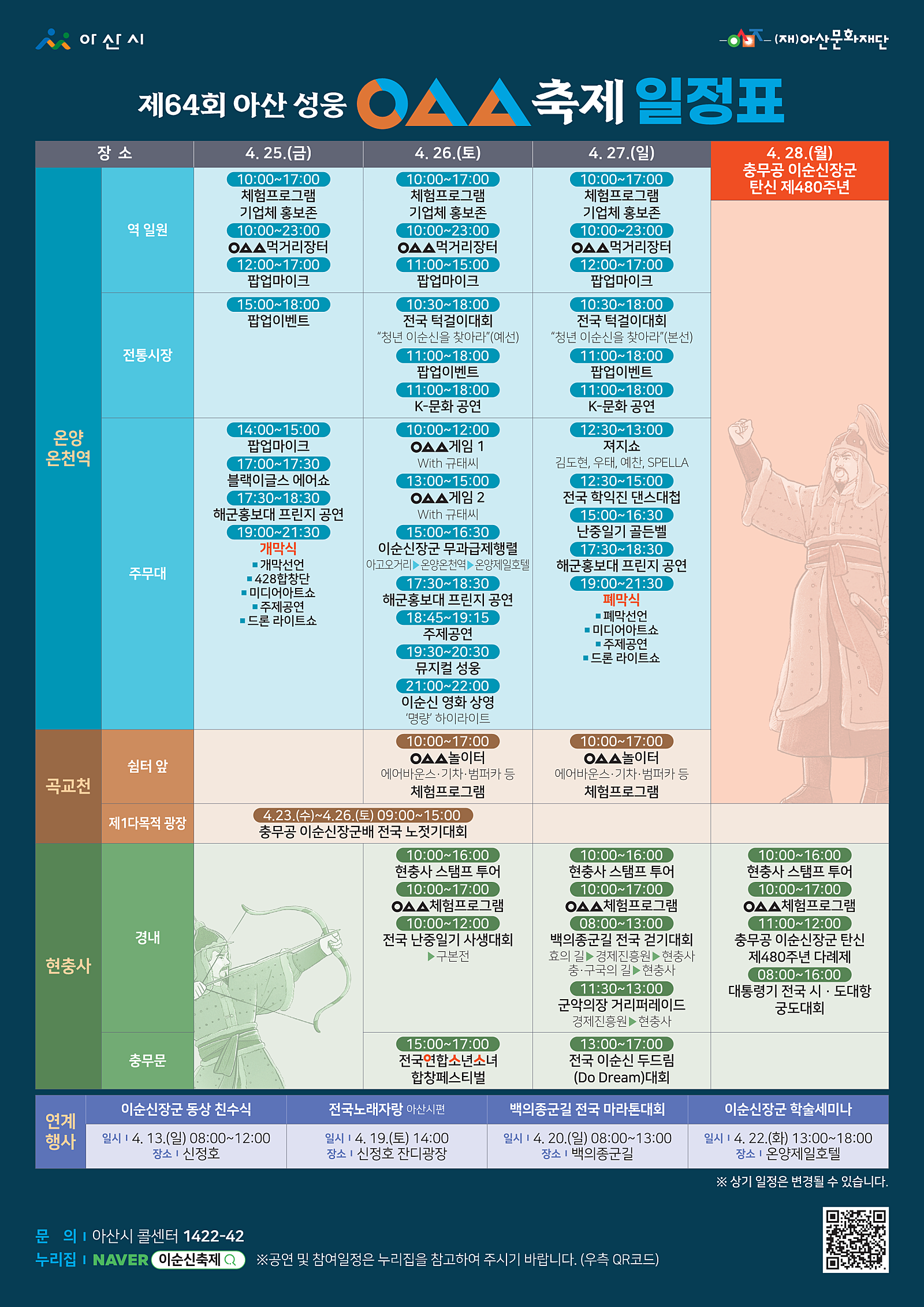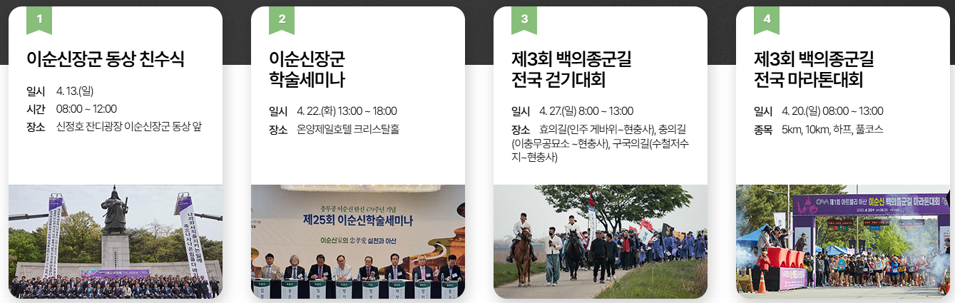 풍성한 체험, 신나는 공연, 맛있는 먹거리까지 모두 갖춘 이번 축제, 올봄엔 아산으로 역사 여행 떠나보시는 건 어떨까요? 충무공의 흔적이 깃든 그 길 위에서, 우리 모두는 조금 더 단단해질 수 있을 거예요.