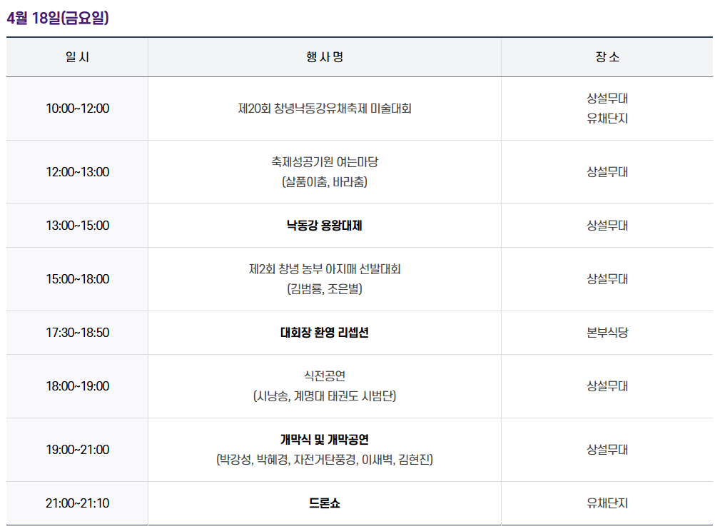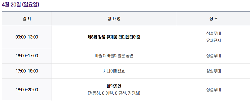 - 위치: 경상남도 창녕군 남지읍 남지유채단지 및 남지체육공원 일원