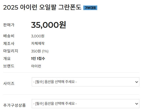 - 옵션 선택: iRUN팀코리아선글라스(추가 20,000) 선택