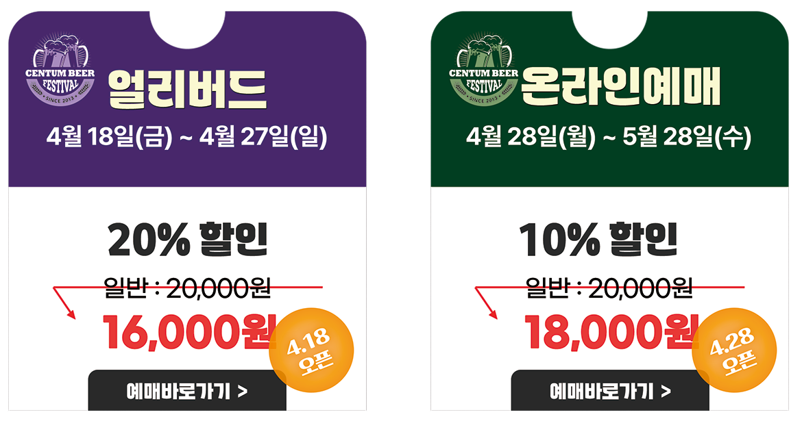 이번 축제는 온라인 얼리버드 티켓 예매가 가능합니다.