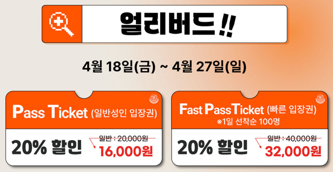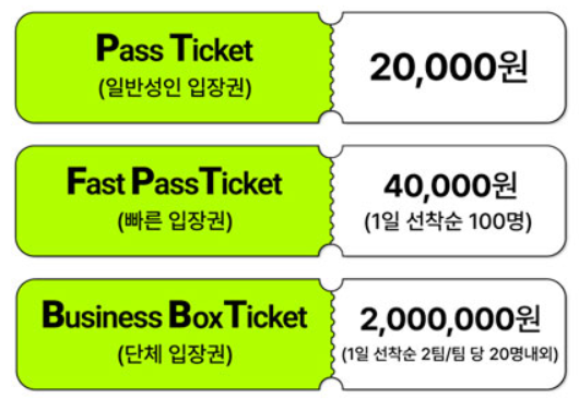 - 현장 매표도 가능하나, 수량 한정: 얼리버드 티켓 소진 이후 현장 구매 시에는 정가로만 가능하며, 조기 마감될 수 있습니다.