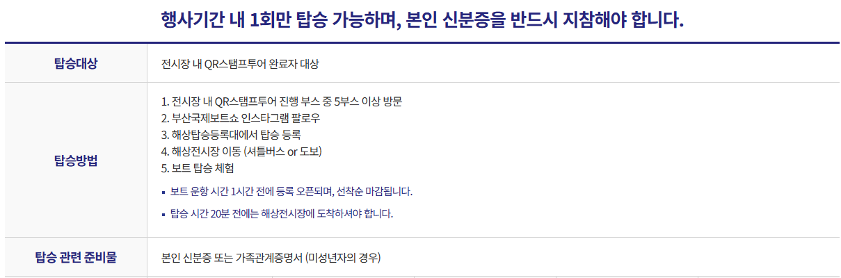 - 사전등록: 부산국제보트쇼 공식 홈페이지