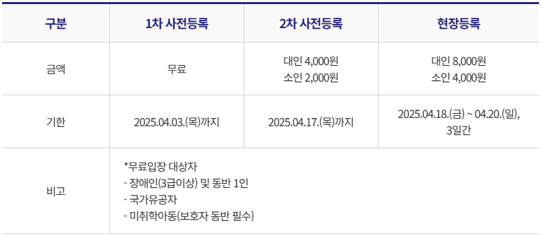 - 1차 사전등록: 무료, 2025년 4월 3일(목)