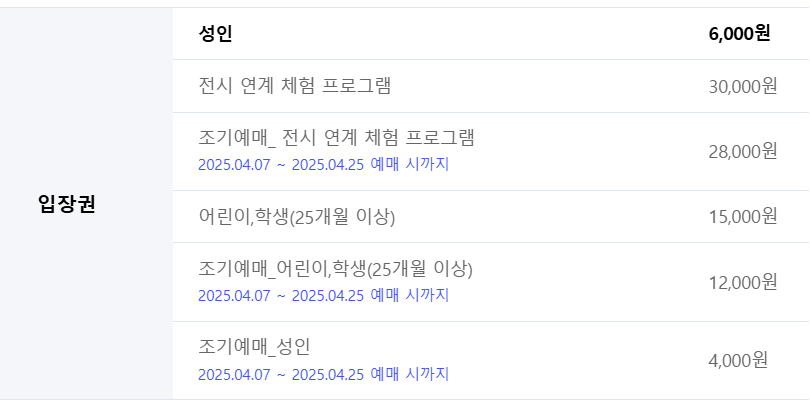 - 입장료: 어린이·학생 15,000원 ㅣ 성인 6,000원