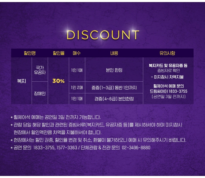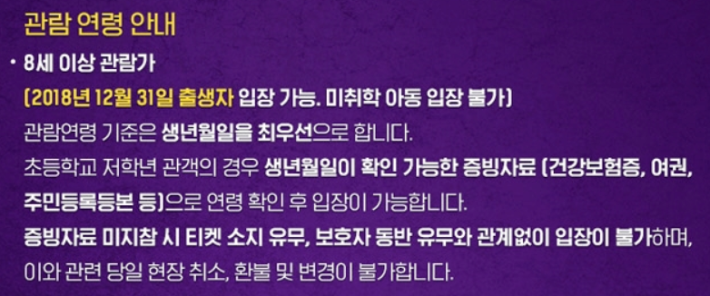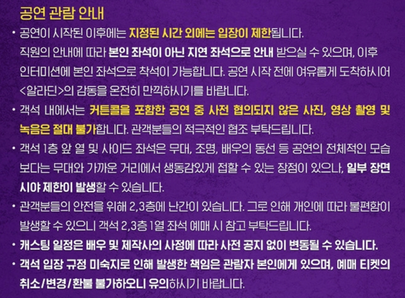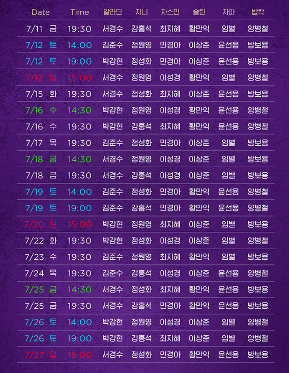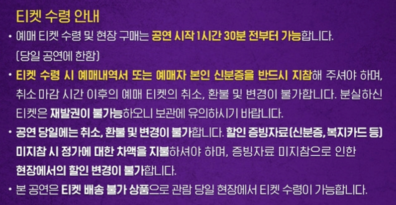 **특정 날짜의 공연 시간이 다를 수 있으므로, 반드시 공연 시간을 사전에 확인하여 주시기 바랍니다.