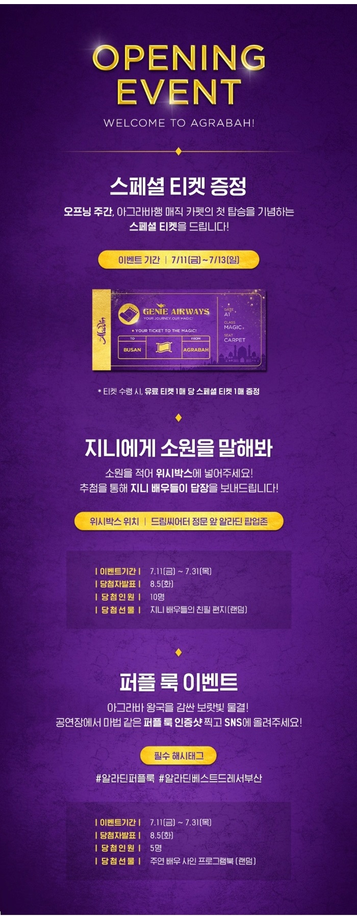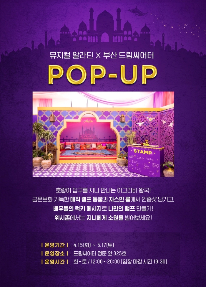 뮤지컬 알라딘 부산 첫공연 - 팝업 전시, 오프닝 이벤트 안내