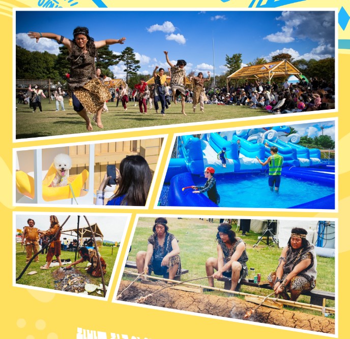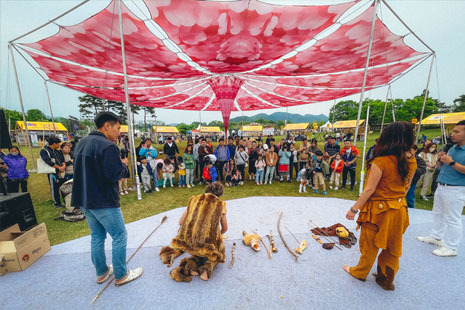 불 피우기, 사냥 흉내내기, 창던지기 등 원시 생존 기술을 놀이로 체험하는 참여형 이벤트.