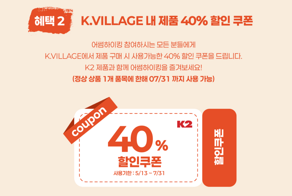 - K2 제품 40% 할인 쿠폰