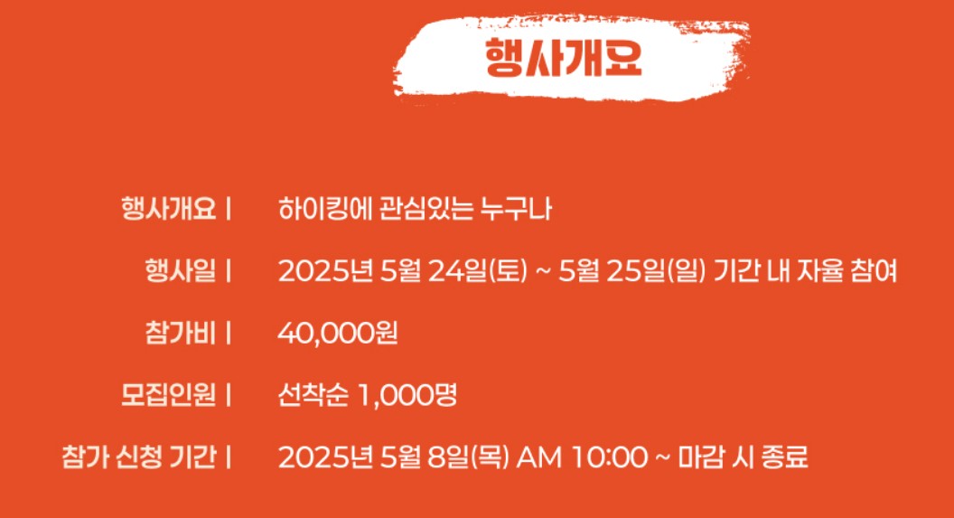 - 참가 신청: 2025년 5월 8일(목) 오전 10시부터 선착순 1,000명 모집