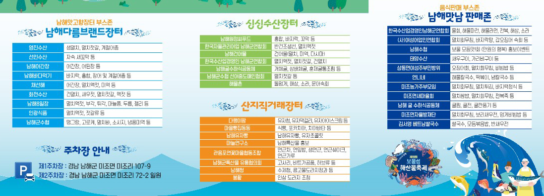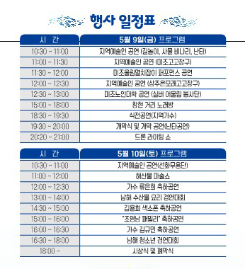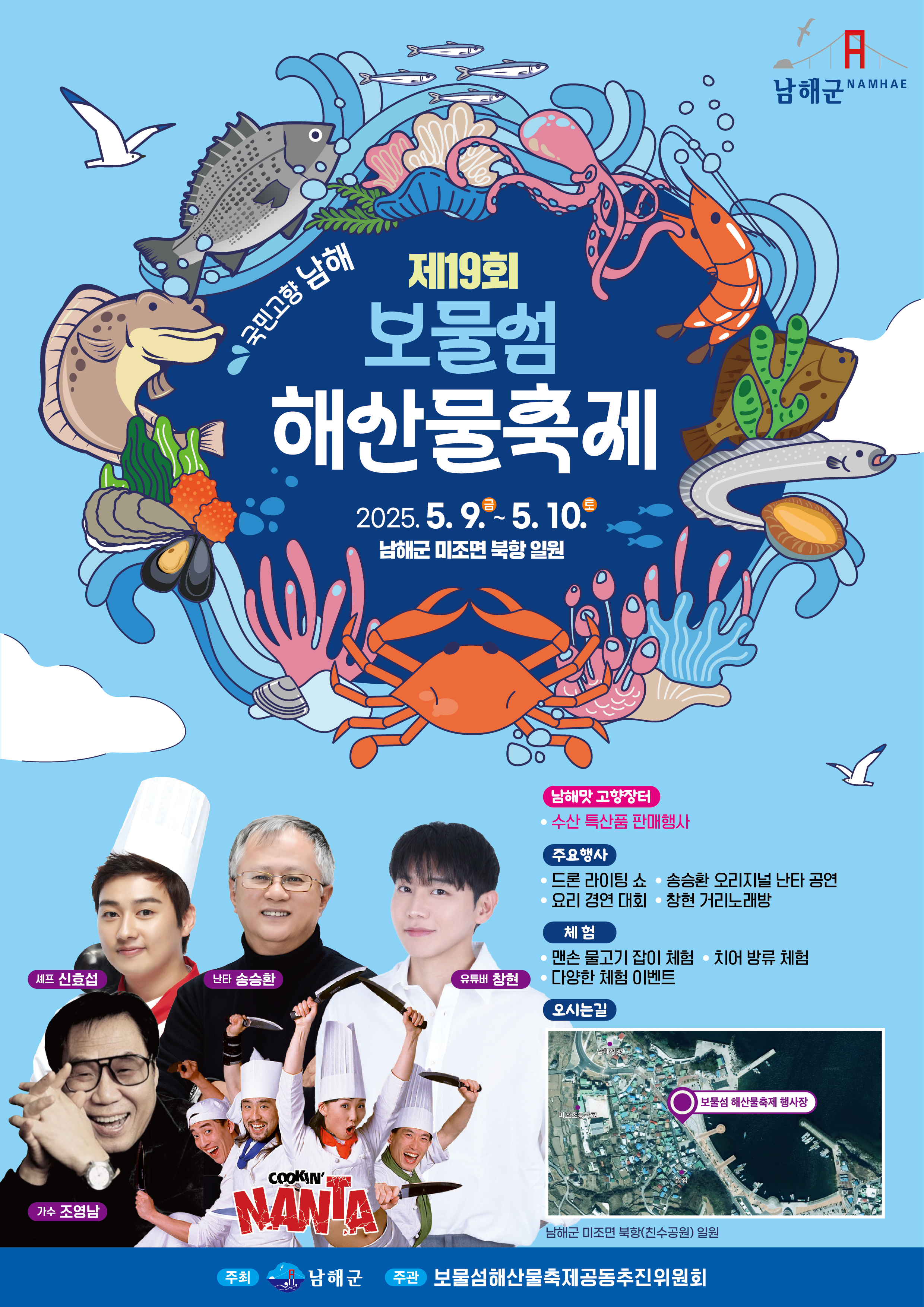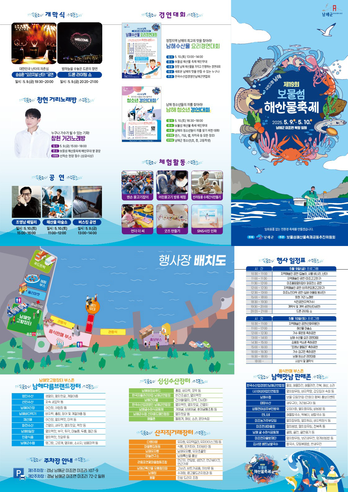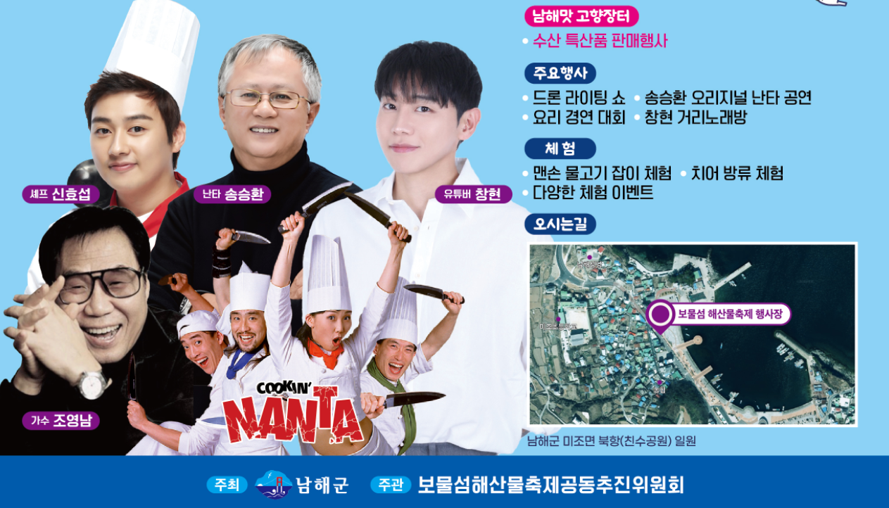 - 주최/주관: 남해군 / 보물섬해산물축제공동추진위원회
