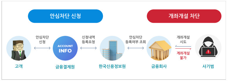 그래서 등장한 것이 바로 ‘비대면 계좌개설 안심차단 서비스’입니다.