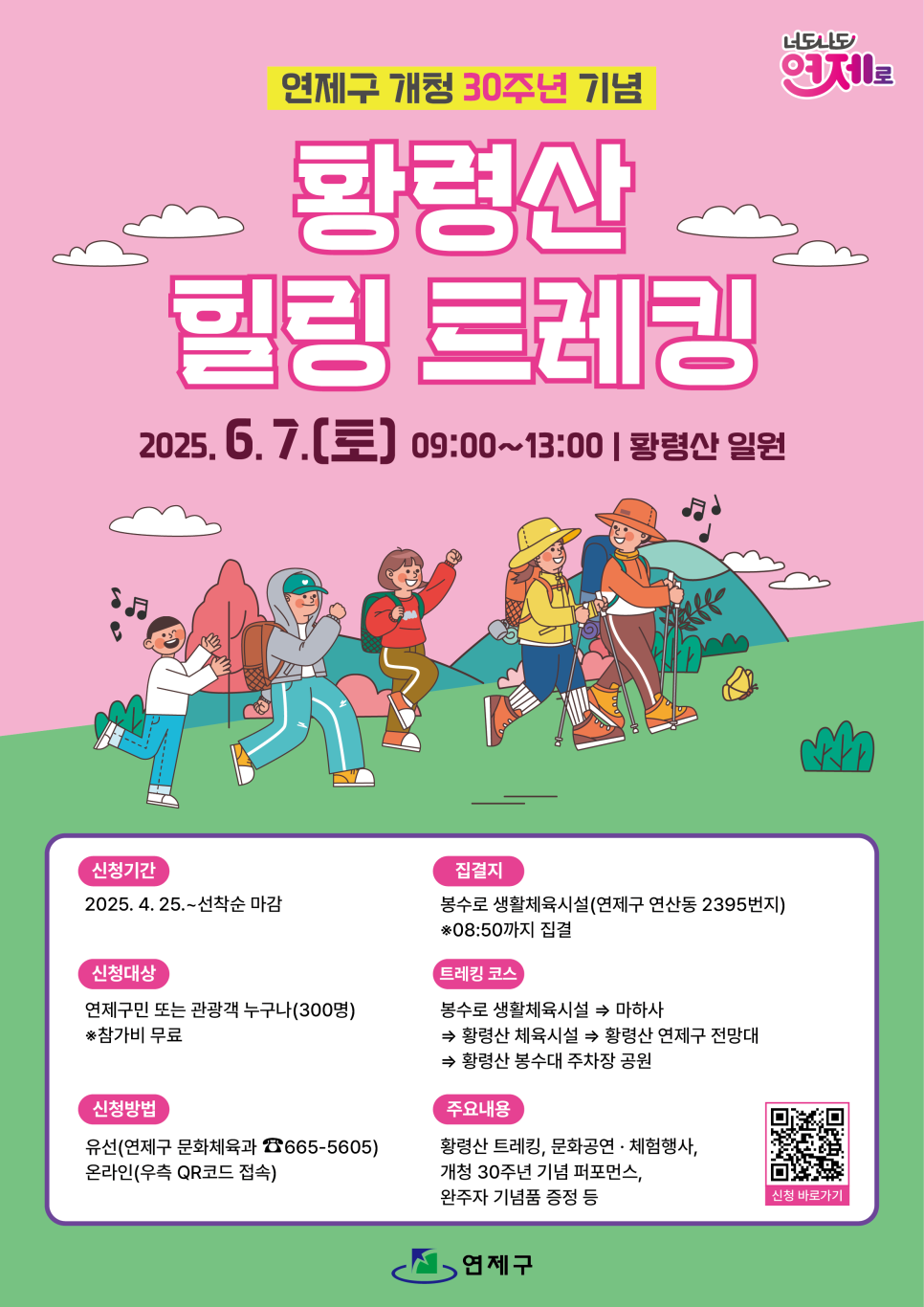 - 행사명: 연제구 개청 30주년 기념 황령산 힐링 트레킹