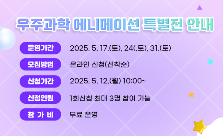 - 행사명: 2025 우주과학 애니메이션 특별전