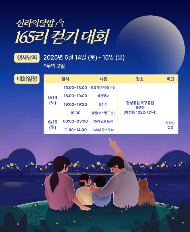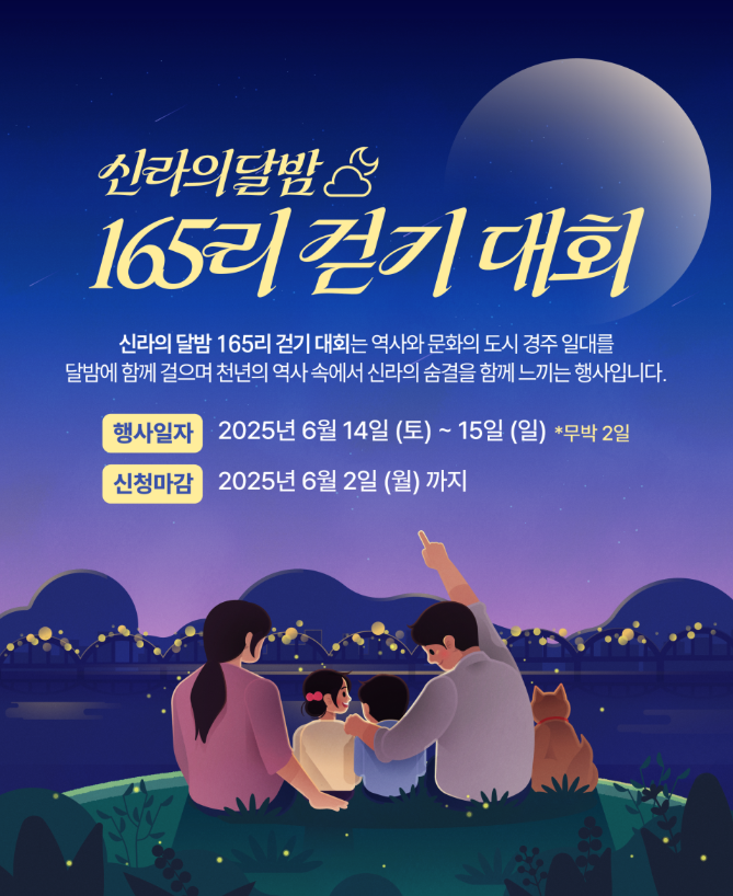2025 제23회 신라의 달밤 165리 걷기대회 참가신청(6/2까지) 안내 (6/14-6/15 무박2일) - 우천시에도 실시