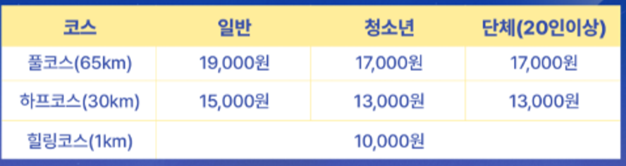 - 하프코스: 일반 1만 5천 원, 청소년 및 단체 1만 3천 원