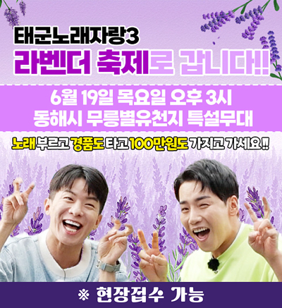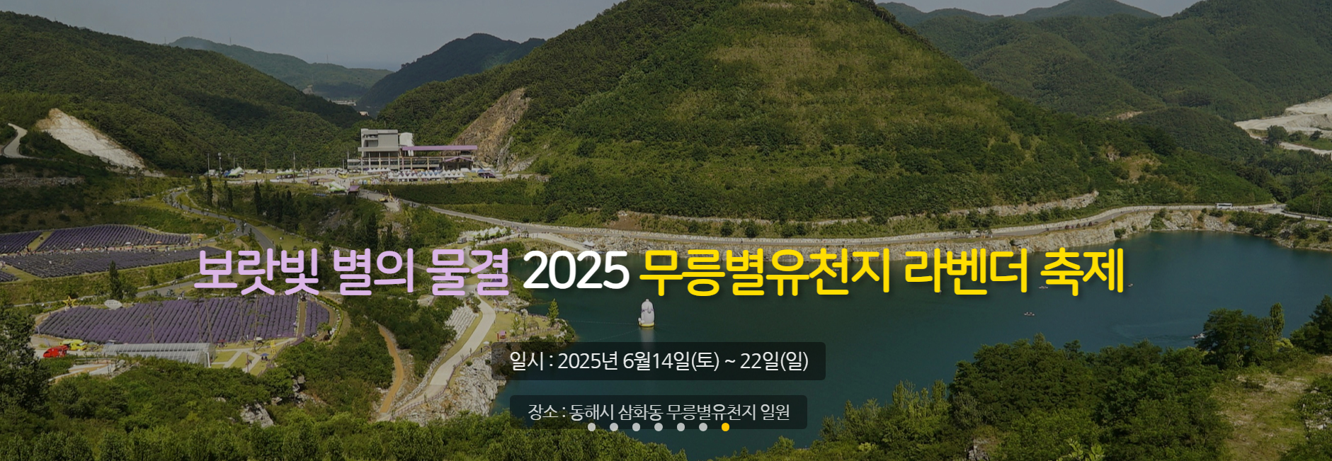 6월, 강원 동해시 무릉별유천지에 보랏빛 라벤더 물결이 펼쳐집니다. 2025년 6월 14일부터 22일까지 9일간 열리는 '무릉별유천지 라벤더 축제'는 낮과 밤을 가리지 않고 감성적인 풍경과 다채로운 체험으로 가득 찬 여름 대표 축제입니다. 특히 올해는 야간 개장과 새로운 프로그램들이 추가되어 더욱 풍성한 즐길 거리를 제공합니다.