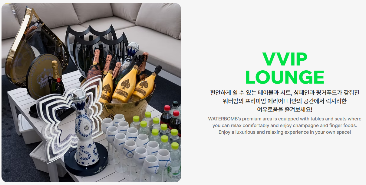 VVIP 전용존에서 샴페인, 핑거푸드 제공 - 현장 구성