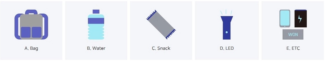 | 기타 | 응급약, 물티슈, 카드/현금 등 |