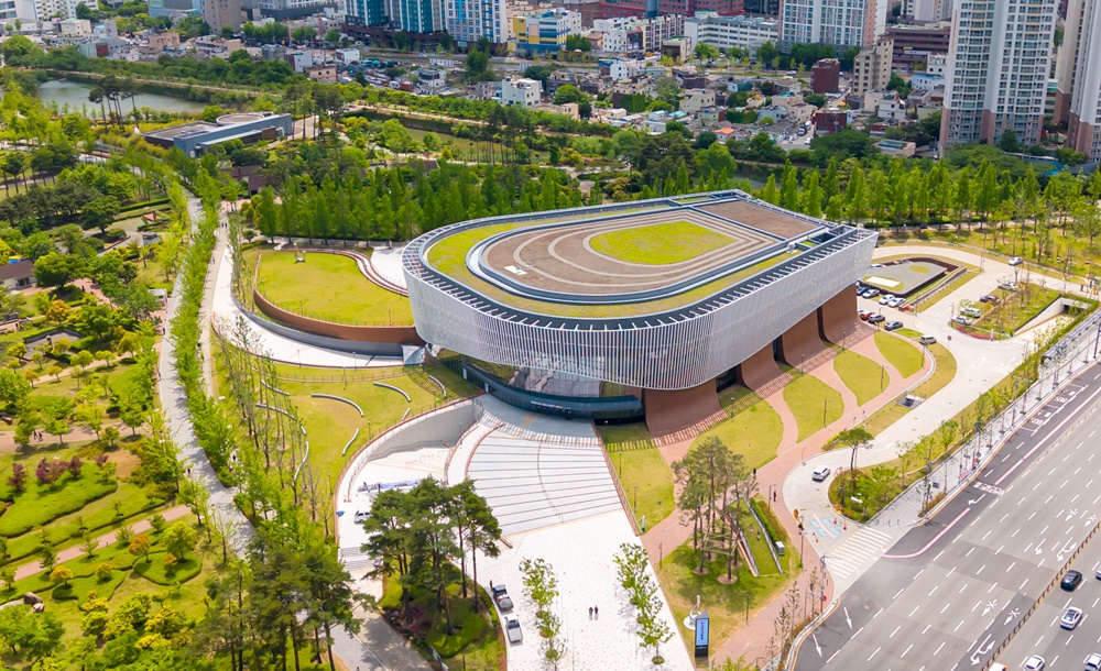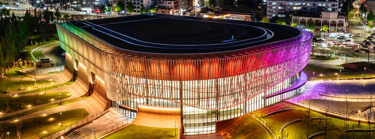 외관은 부산의 바다와 파도를 형상화한 유려한 곡선이 돋보이며, 통유리 로비는 자연 채광과 야경이 아름답게 어우러져 문화와 힐링이 공존하는 공간으로 완성됐습니다.