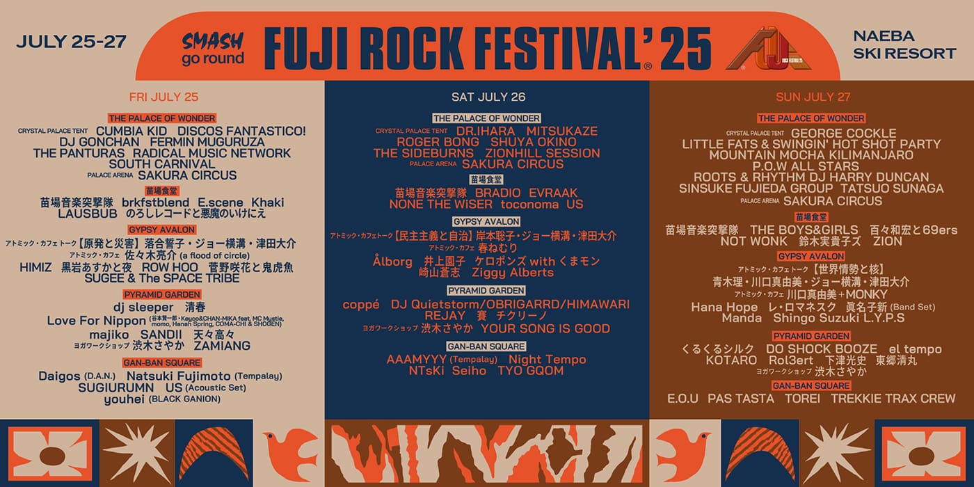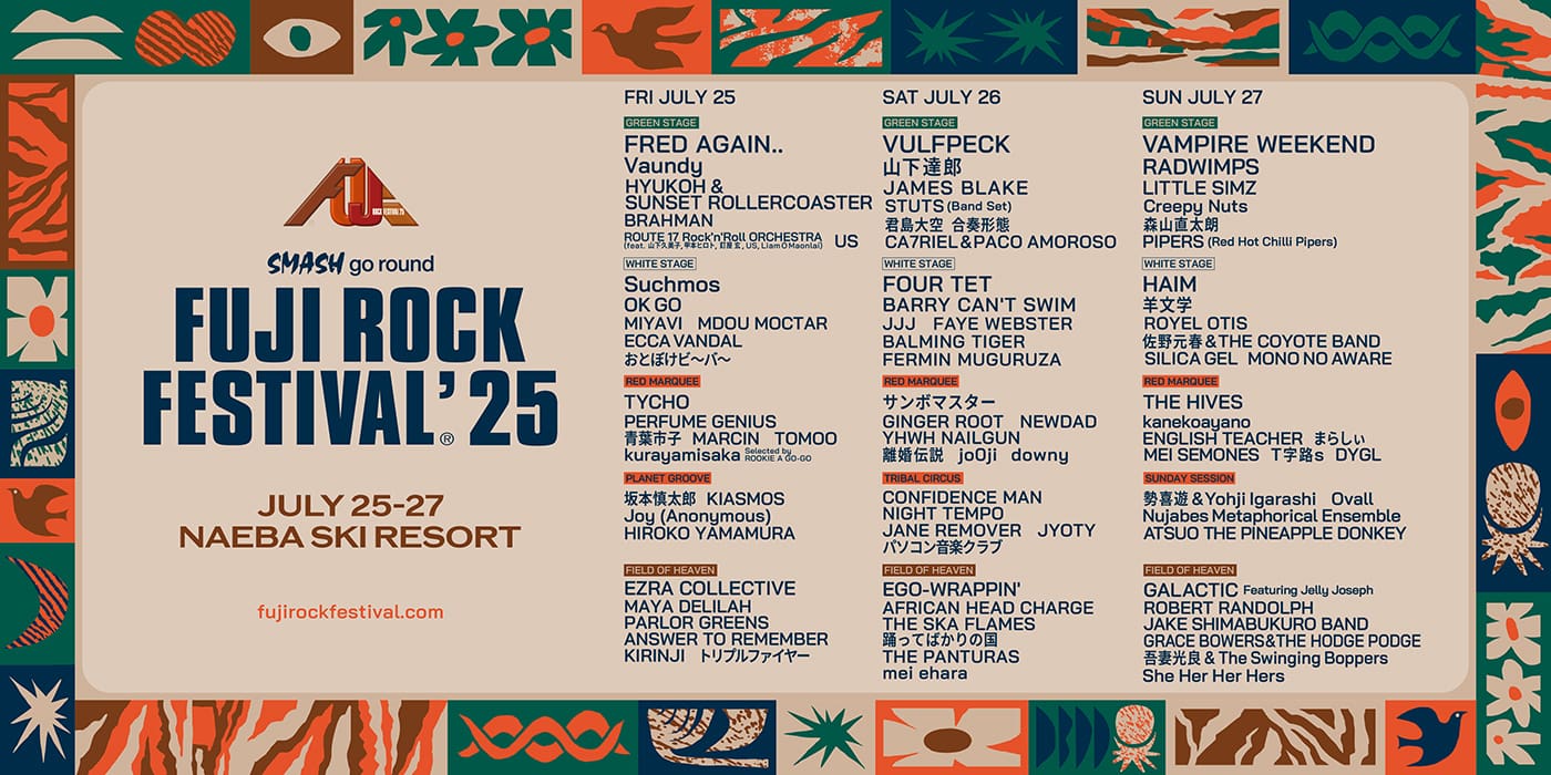 [FUJI ROCK FESTIVAL '25] July 25th - 27th Naeba Ski Resort, Yuzawa-cho, Niigata Pref.