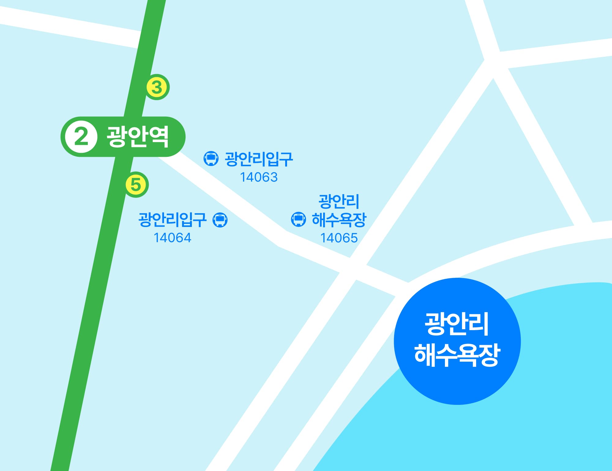 - 광안리해수욕장 동방시장 방면 (정류장코드: 14068)