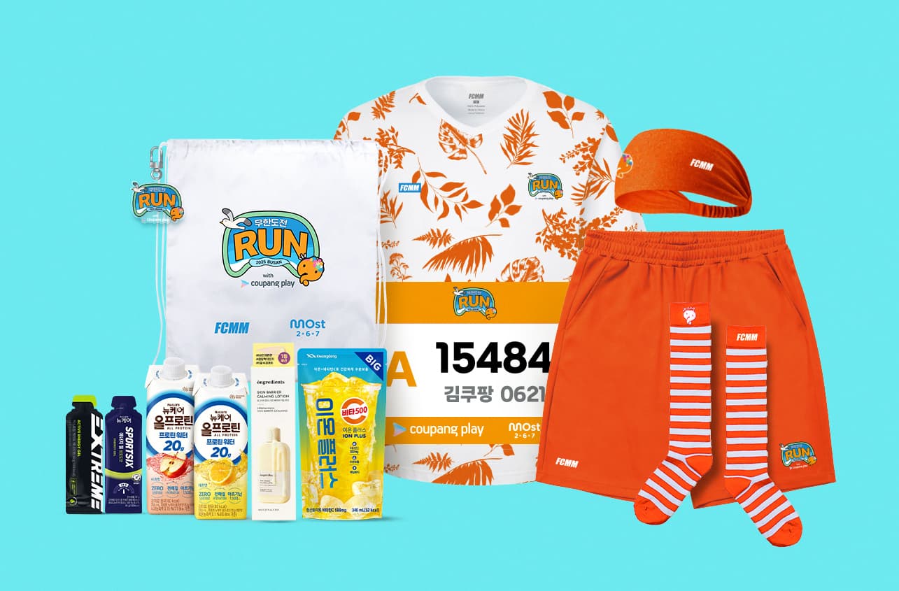 - 레이스팩에는 배번호표, FCMM 티셔츠, 반바지, 양말, 헤어밴드, 짐색, 키링, 광동제약 비타500 이온플러스 (1팩), 온그리디언츠 스킨 베리어 카밍 로션 스틱포 (5EA), 익스트림 액티브 에너지젤 (1포), 뉴케어 올프로틴 20g (레몬맛/사과맛 중 랜덤 1팩), 뉴케어 스포식스 에너지 젤 청포도맛 (1포)가 포함됩니다.