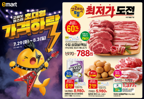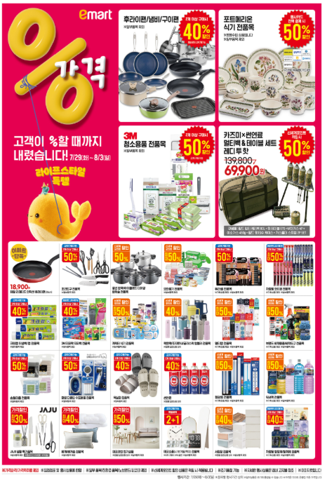 - 컨셉: ‘초대형 가격하락’ - 필수 소비재를 반값 또는 최대 60% 할인 제공