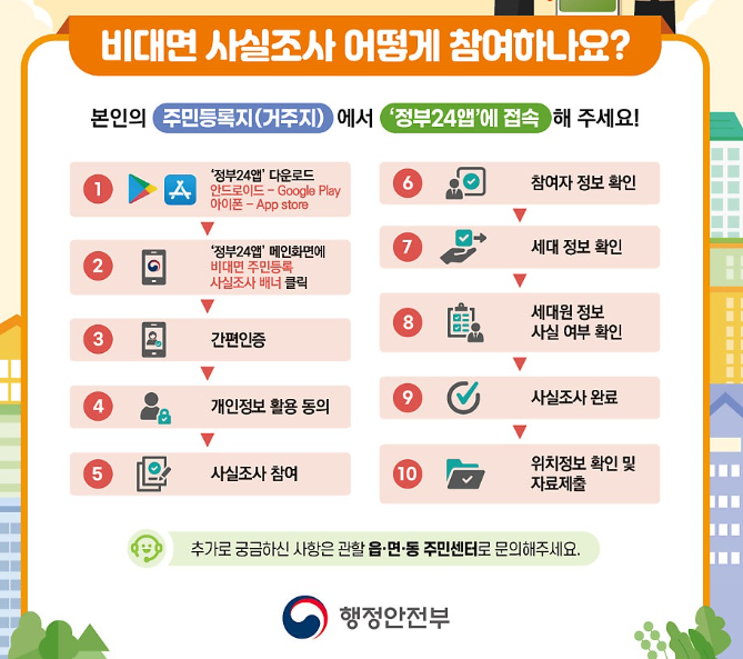정확한 주민등록 사실조사를 통해, 더 나은 행정서비스와 복지정책이 실현될 수 있도록 이번 조사에 모두 적극적으로 참여해주시기 바랍니다.