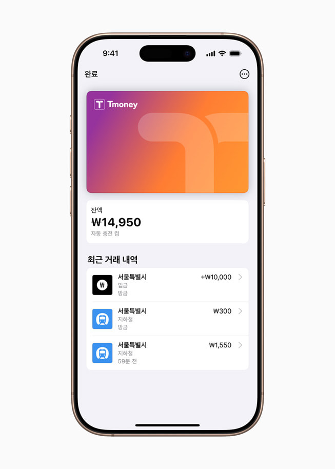 - 선불형 티머니 카드만 Apple Wallet에 등록 가능하며, 후불형이나 정기권, 기후동행카드는 현재 지원되지 않는다.
