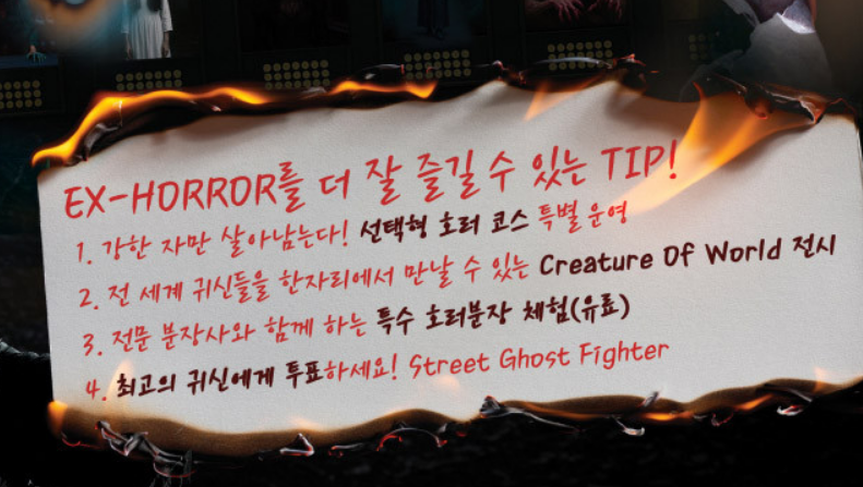 - 특수 호러 분장 체험 : 전문 아티스트의 손길로 귀신 메이크업을 직접 받아볼 수 있는 체험존