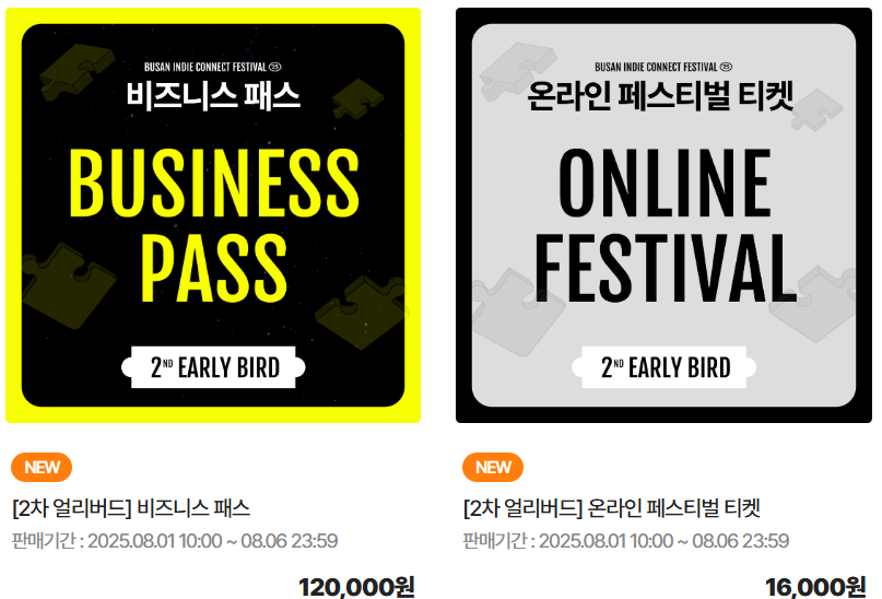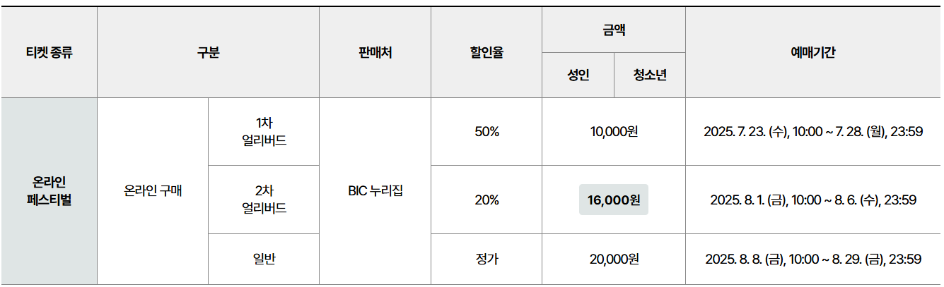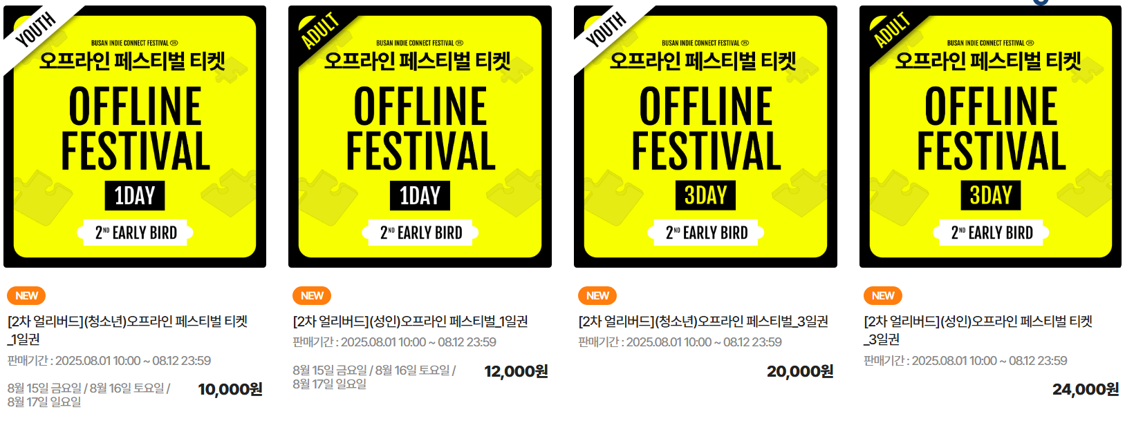 2025 부산인디커넥트페스티벌의 티켓은 온라인과 오프라인 각각 별도로 판매된다.