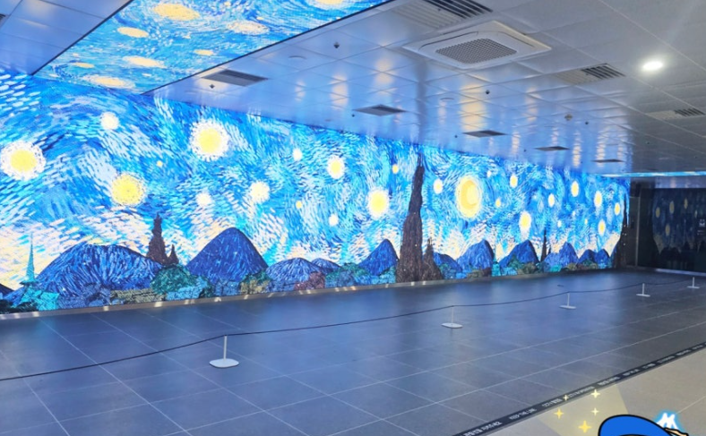 영상은 일정 주기로 반복되며, 조명과 움직임이 어우러져 바다에 있는 듯한 몰입감을 제공한다. 이동 중에 가볍게 둘러볼 수 있지만, 몇 분간 머무르며 감상하면 충분한 힐링이 됩니다.
