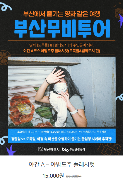 - 데일리 B: 영화 ⟪친구⟫, ⟪범죄와의 전쟁⟫ 등의 촬영지를 돌아보는 2시간짜리 투어입니다.