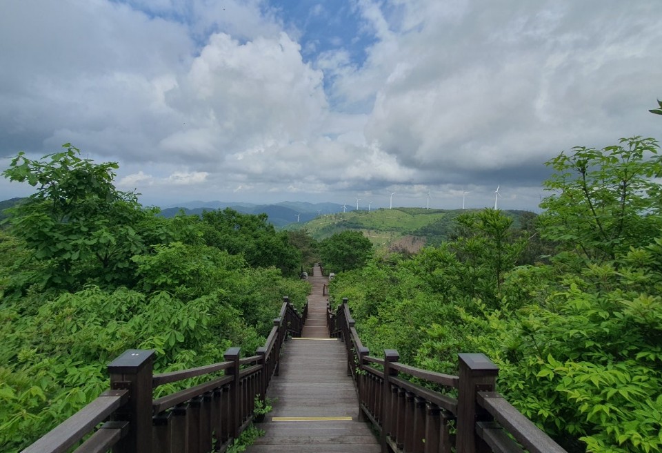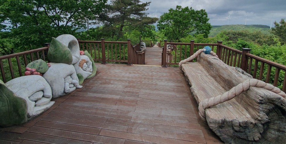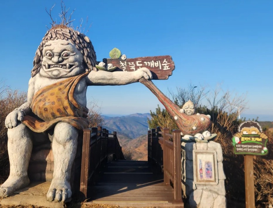 - 특징: 거대 도깨비 조형물, 설화 스토리텔링(황금 망개떡·쇠목이 등), 데크 산책로, 정상 전망(풍력발전기 라인, 사방 탁 트인 조망)