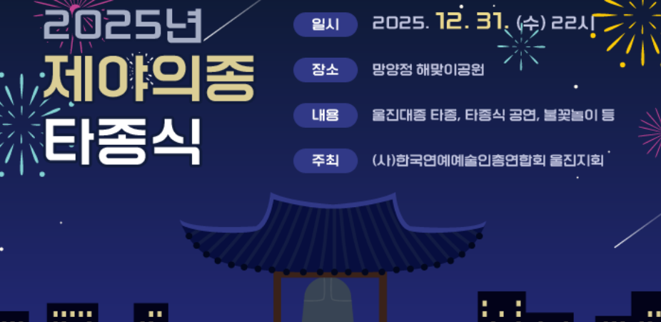 한 해의 끝자락에서 울진의 종이 울리고, 새해의 첫 빛이 바다 위로 떠 오른다. 경북 울진군은 31일, 한 해의 마무리와 새해의 시작을 알리는 '2025 제야의 종 타...