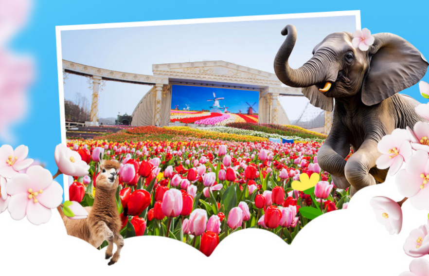 가족 단위 방문객이나 연인들에게 추천하는 대규모 테마파크 축제입니다. 약 100만 송이의 튤립이 포시즌스 가든을 가득 채웁니다.