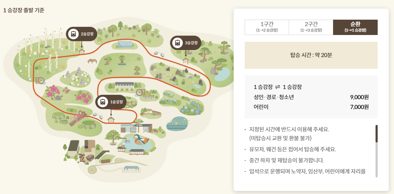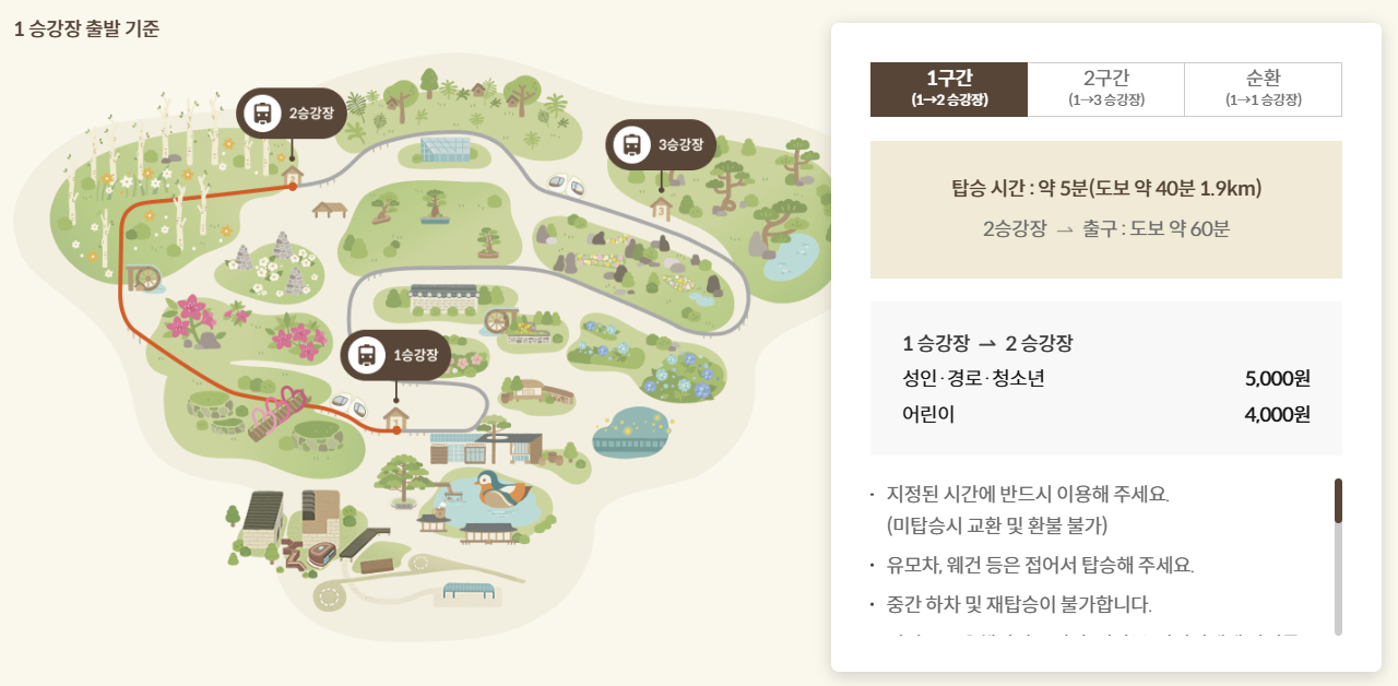 - 탑승 요금: 편도 8,000원 / 왕복 12,000원