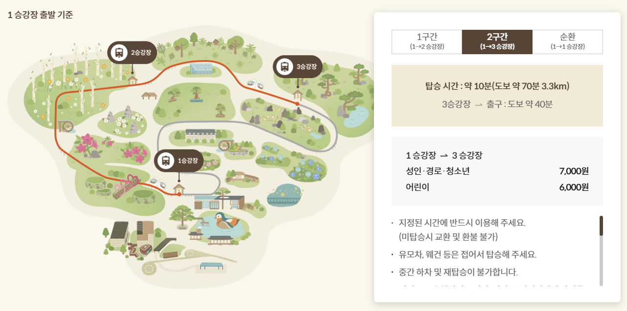 - 운행 구간: 입구 ↔ 정상 구간 운행
