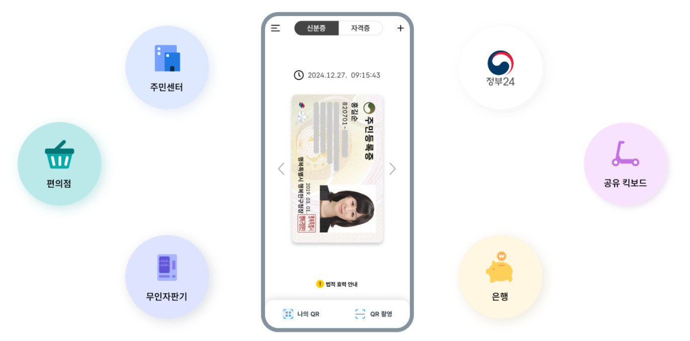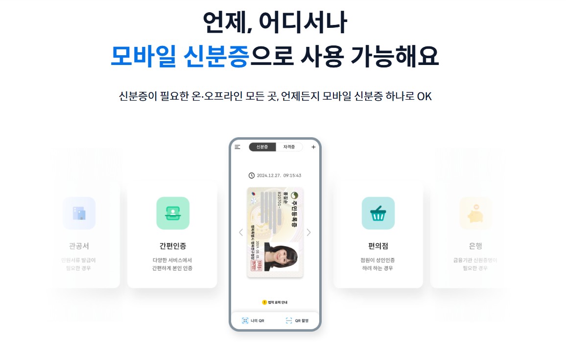 - 발급 완료 후 사용: 발급이 완료되면, 필요한 곳에서 QR 코드 또는 NFC 방식으로 본인 인증을 진행할 수 있습니다.