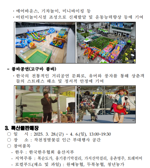 - 어린이 놀이시설: 가족 단위 방문객들을 위한 놀이기구와 체험 공간도 운영됩니다.