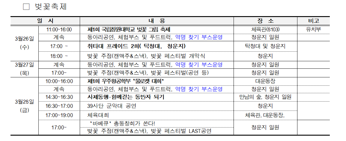 국립창원대학교 벚꽃축제 방문 꿀팁